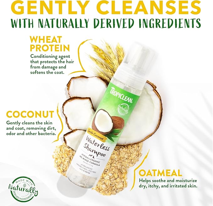 - NO-RINSE FORMULA – TropiClean hypoallergenic pet shampoo is a no-rinse dog shampoo that creates a quick and easy cleanup for those in-between bath days.