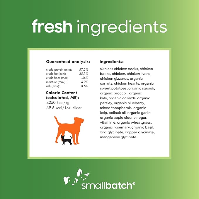 Smallbatch Pets Freeze-Dried Premium Raw Food Diet for Dogs, Chicken Recipe, 14 oz, Made in The USA, Organic Produce, Humanely Raised Meat, Hydrate and Serve Patties, Single Source Protein, Healthy