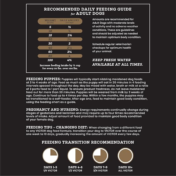 - PROPRIETARY VPRO BLEND: Every VICTOR dog kibble formula begins with our exclusive mix of supplements, vitamins and minerals that have been designed to help maximize the genetic potential of every dog, regardless of breed, age, or activity level