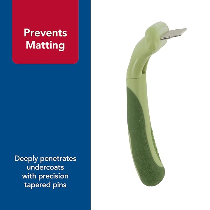 - Safari Undercoat Rake: This deshedding rake deeply penetrates undercoats with precision tapered pins to prevent matting; it's the perfect addition to your grooming tools for dogs