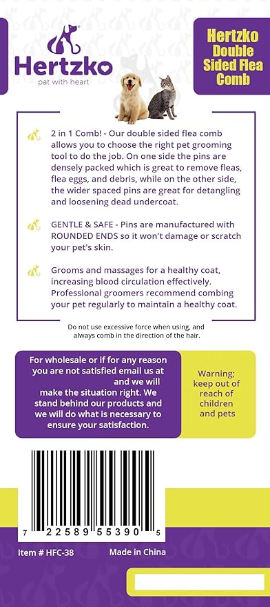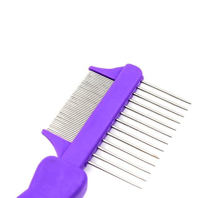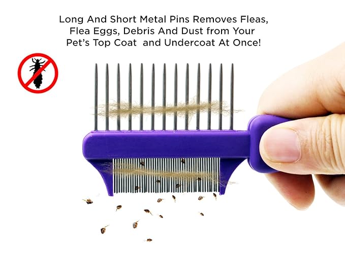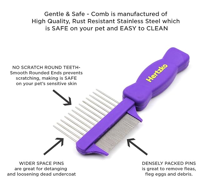 Hertzco Double-Sided Comb Hair Brush & Dog/Cat Grooming Kit - Closely Spaced Metal Pins - Detangling, Dog Combs, & Round Brushes - Hair Comb Tool (Double-Sided)