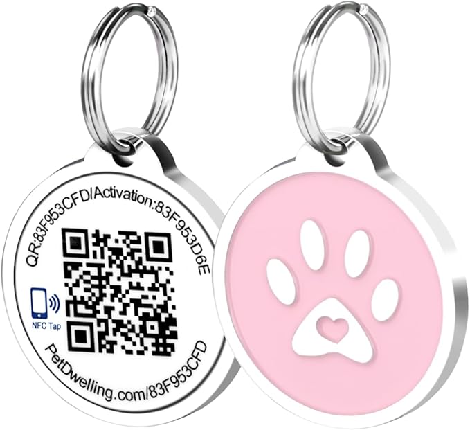 Smart QR Code-NFC Pet ID Tag - Dog Tags - Cat Tags - Online Pet Profile - Instant Email Alert -Scanned QR Tag GPS Location (Pink Paw)