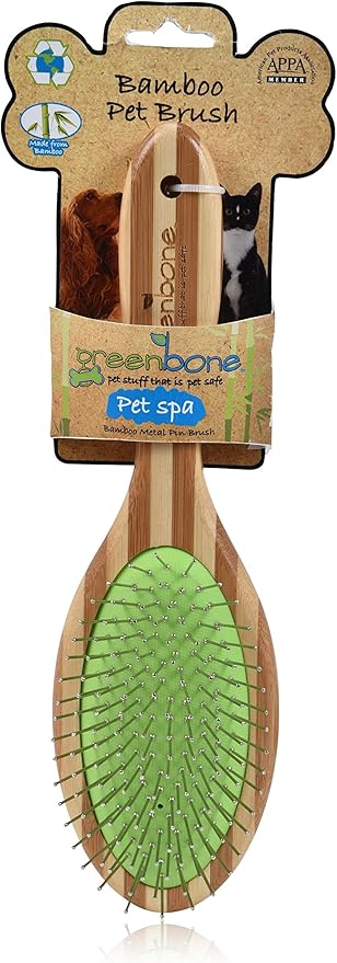 Pet Spa Metal Pin Brush - All-Natural Bamboo Pet Grooming Brush - Entirely Made from Sustainable Bamboo for Dogs & Cats
