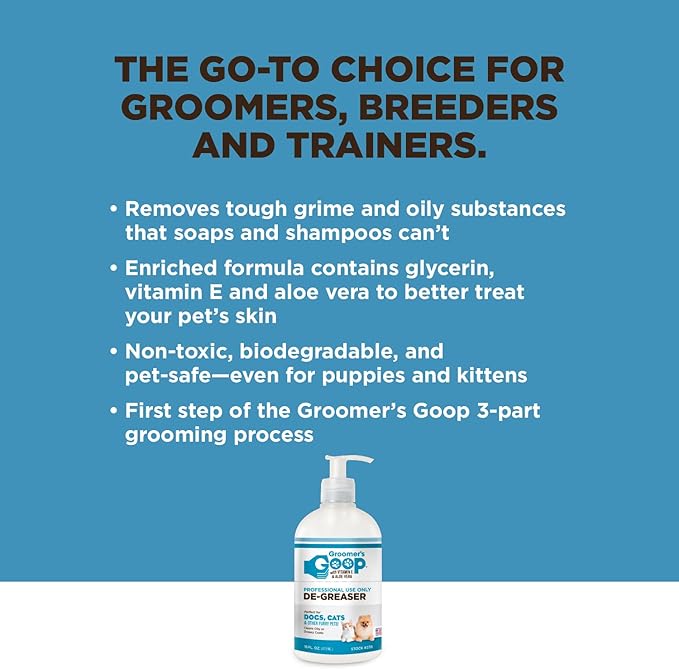 - ๐๐ฟ๐ผ๐ผ๐บ ๐๐ผ๐๐ฟ ๐ฝ๐ฒ๐ ๐น๐ถ๐ธ๐ฒ ๐ฎ ๐ฝ๐ฟ๐ผ ๐๐ถ๐๐ต ๐๐ฟ๐ผ๐ผ๐บ๐ฒ๐ฟ'๐ ๐๐ผ๐ผ๐ฝ ๐๐ฒ-๐๐ฟ๐ฒ๐ฎ๐๐ฒ๐ฟ Groomerโs Goop is the choice of professional groomers, breeders, and those who show their pets.