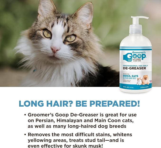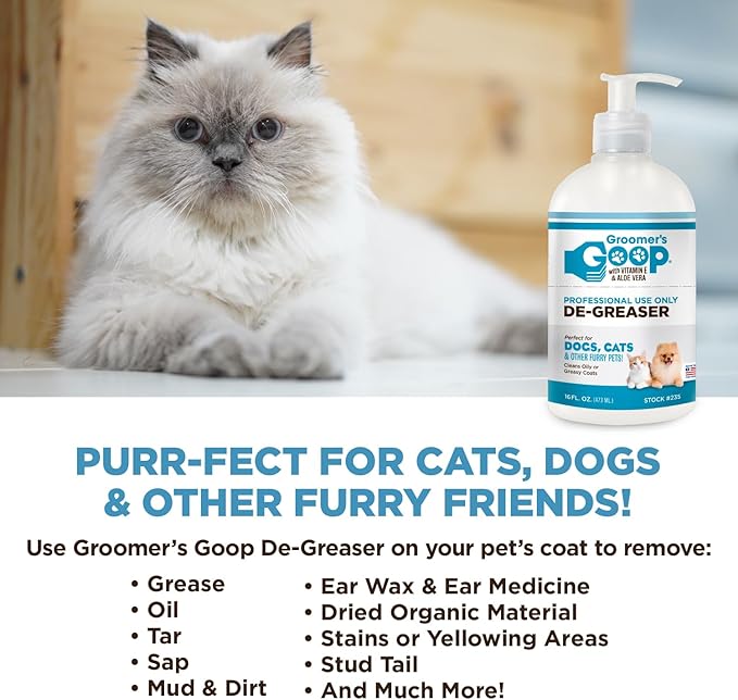 - ๐ง๐ต๐ฒ ๐ฏ๐ฒ๐๐ ๐ณ๐ผ๐ฟ ๐ผ๐ถ๐น๐ ๐ฐ๐ผ๐ฎ๐๐, Groomerโs Goop remove grease, stud tail, and stubborn grime from the coats of Persian, Himalayan, Maine Coon, all domestic cats and long-haired dogs.
