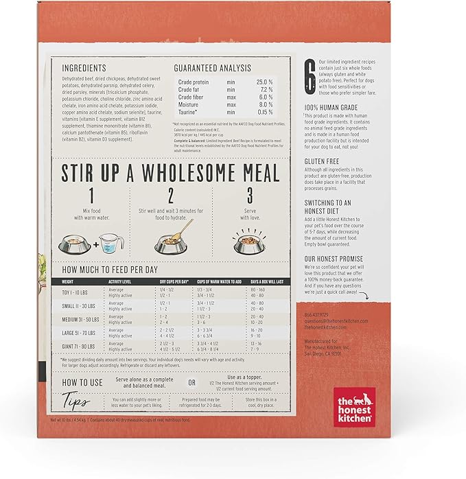 The Honest Kitchen Dehydrated Limited Ingredient Beef Dog Food,10 Lb Box