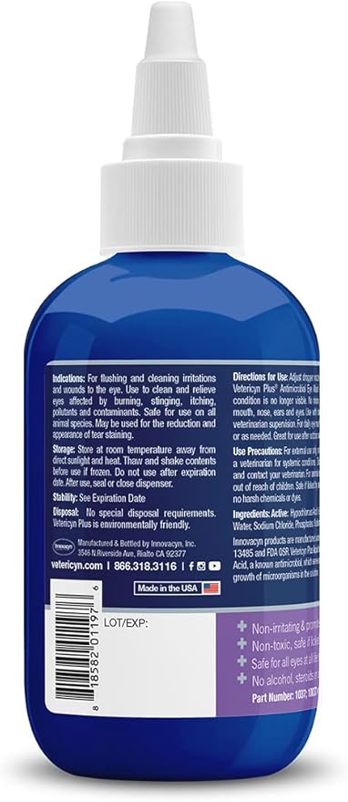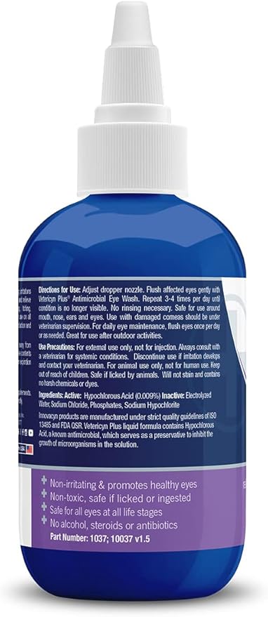 - SOOTHE PET'S IRRITATED EYES: Vetericyn Plus Eye Wash works to effectively flush the pet's eye and provide relief from symptoms of pink eye and other eye irritations
