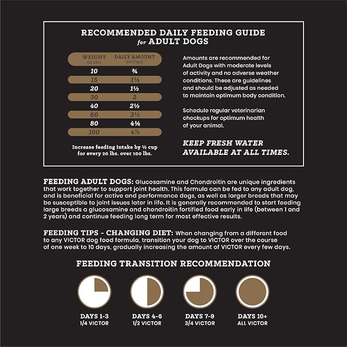 VICTOR Super Premium Dog Food – Performance Dry Dog Food – 26% Protein for Active Adult Dogs – Includes Glucosamine and Chondroitin for Hip and Joint Health, 5lbs