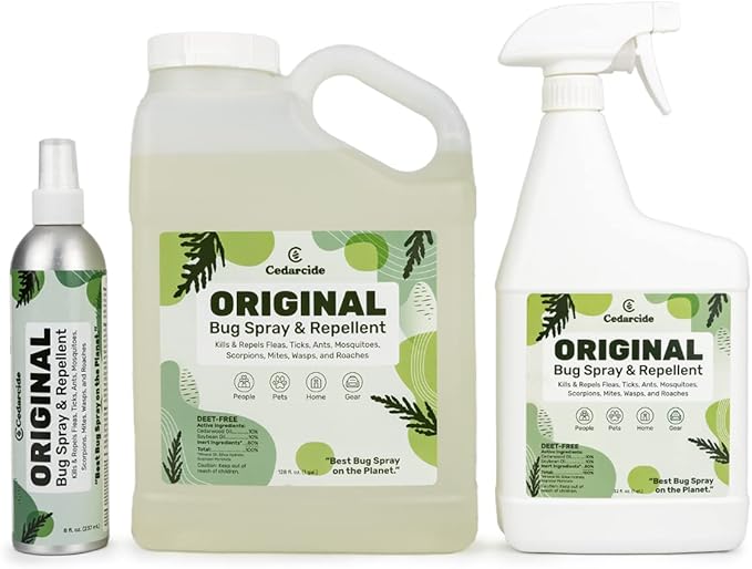 Cedarcide Original Bug Spray | Repel & Kill Fleas, Ticks, Mosquitoes, Mites, Ants & Chiggers | for use on People, Pets & Home | Natural Cedar Oil | Large Size Kit