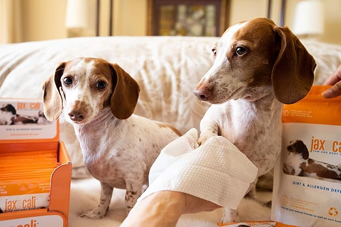 - CLEANSE AND NOURISH – Jax & Cali Paw and Body Wipes have a unique formula to cleanse, nourish and protect using vitamins B3, E and soothing aloe. When you open the package you will find natural, with no harmful chemicals or ingredients, PETA certified cruelty-free & vegan, extra-large, super thick and textured paw and body wipes. Don’t be afraid to put them to the test –go ahead and give them a good pull to stretch to see how possible it is to clean 4 paws (or more) with 1 wipe!