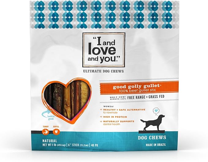 I and love and you Good Golly Gullet Stix - Beef - Rawhide Alternative, Single Ingredient, Free Range Grass Fed Beef, 6in, 48ct