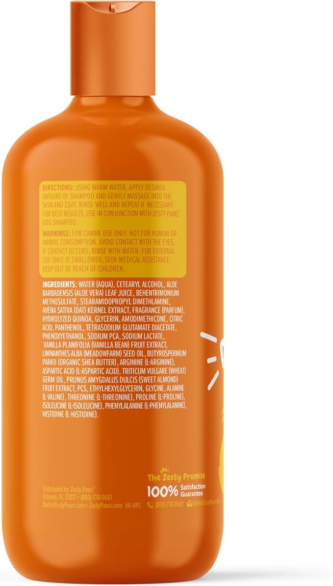 - GENTLE CONDITIONING FORMULA - Zesty Paws Dog Conditioner is a bath wash that helps pets feel clean and smell fresh. Featuring a blend of gentle ingredients, this nourishing conditioner is a great addition to your dog's next shampoo bath.