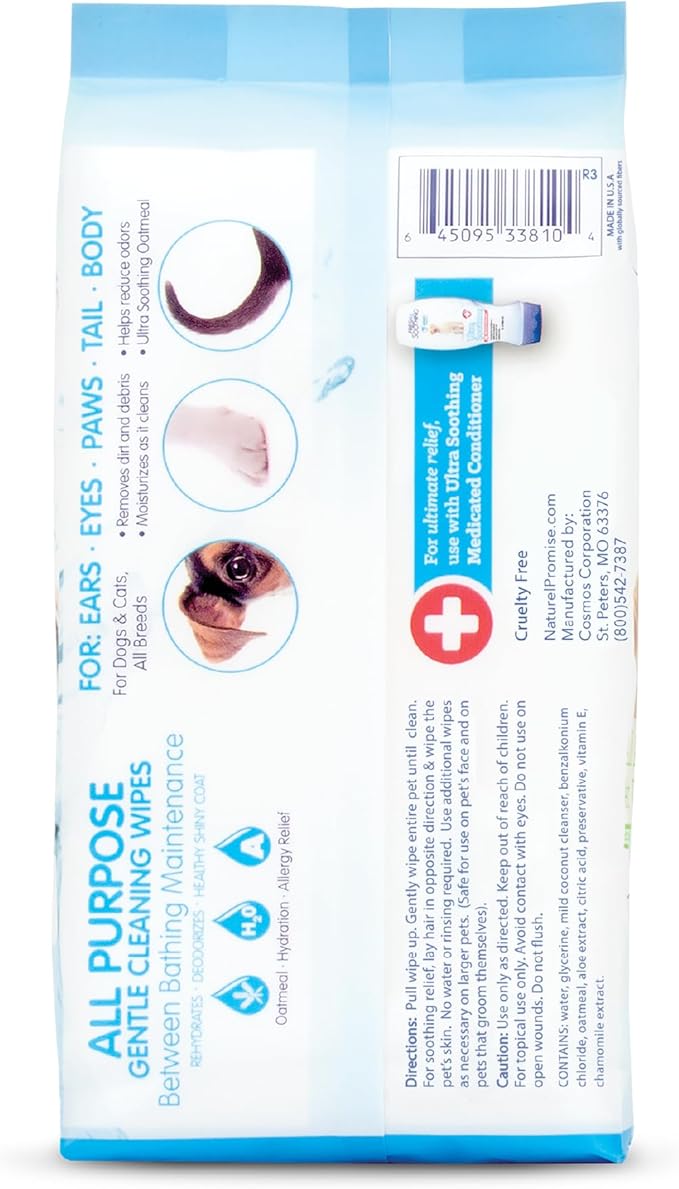 - Pet Wipes - Fresh & Soothing All Purpose Pet Wipes are an excellent option for between bath maintenance. Pet wipes for dogs and cats of all breeds aged 12 weeks and older. Contains one (1) 50ct package of Fresh & Soothing All Purpose Pet Grooming Wipes