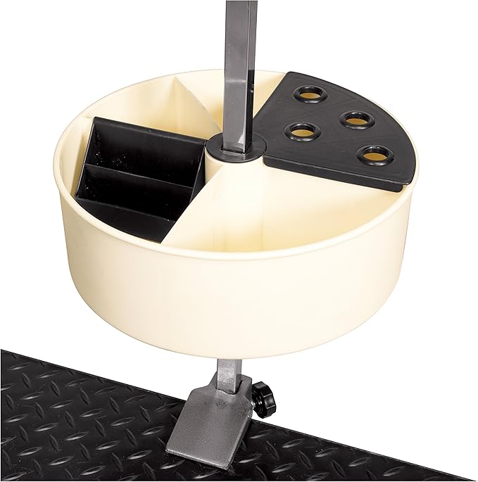 - Easily slide up or down the grooming arm and can be secured at any height, keeping tools conveniently within reach