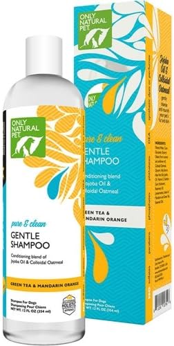 Only Natural Pet Pure and Clean Gentle Grooming Shampoo for Dogs with Jojoba Oil and Colloidal Oatmeal - Green Tea and Mandarin Orange Scent - 12 Fl Oz - Gentle Shampoo