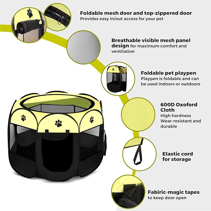 Pet Dog Puppy Playpen Dog Cat Tent Crates, Foldable Exercise Kennel Portable Playpen for Small Medium Dogs/Cats/Rabbits, Indoor Outdoor Travel Camping Use with Removable Zipper Top Green