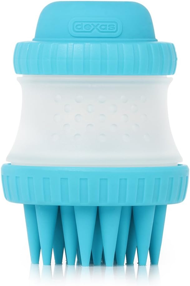 Dexas ScrubBuster Silicone Dog Washing Brush with Built-in Shampoo Reservoir, Blue, One Size (PW73022-312)