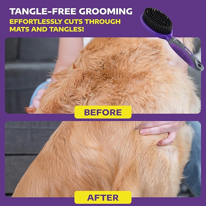 - GROOMS AND MASSAGES FOR A HEALTHY COAT - Brushing your pet occasionally with our bristle brush increases blood circulation and leaves your pet with healthy skin and a shiny topcoat.