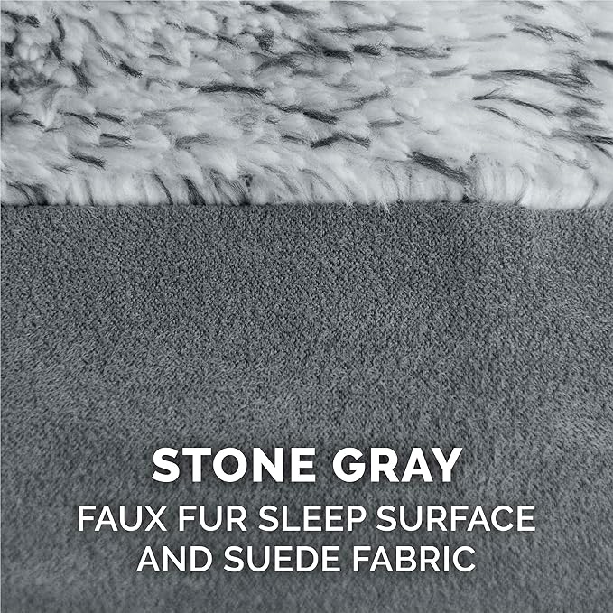 Furhaven Orthopedic Dog Bed for Large Dogs w/ Removable Bolsters & Washable Cover, For Dogs Up to 95 lbs - Two-Tone Plush Faux Fur & Suede L Shaped Chaise - Stone Gray, Jumbo/XL