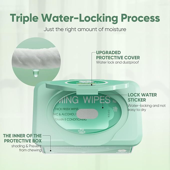 - DELICATE AND EFFICIENT CLEANSING: At PUPMATE, These grooming wipes for dogs & cats, and puppies wipes go beyond cleaning – they embody our commitment to creating a happier, healthier life for pets. Whether it's ridding them of dirt, mud, or a weird smell, our pet wipes work diligently to cleanse their butt, eyes, ears, and paws, ensuring that their four-legged friend feels consistently clean and delightfully refreshed