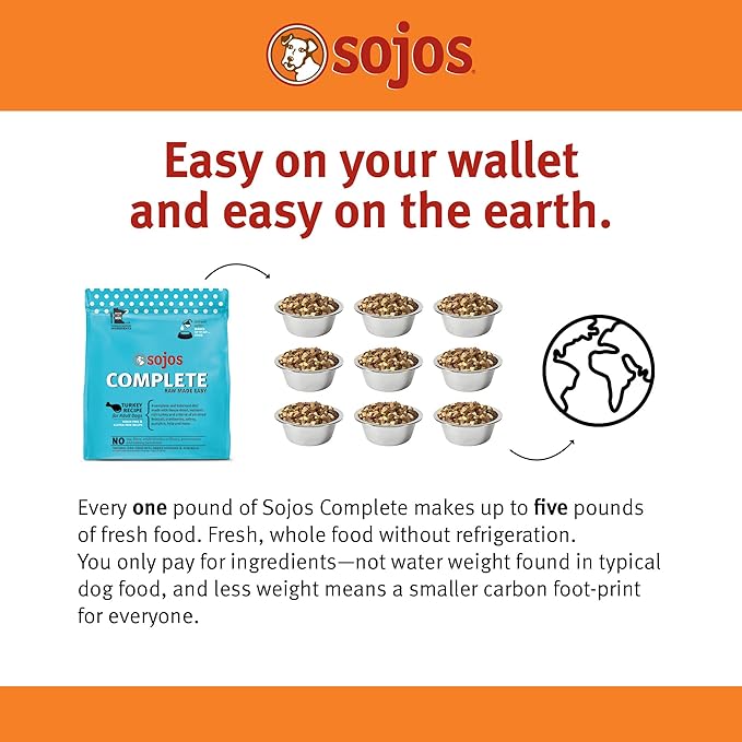 SOJOS Complete Turkey Recipe Dehydrated Dog Food, 1.75 lb, Blue