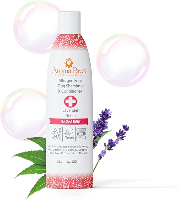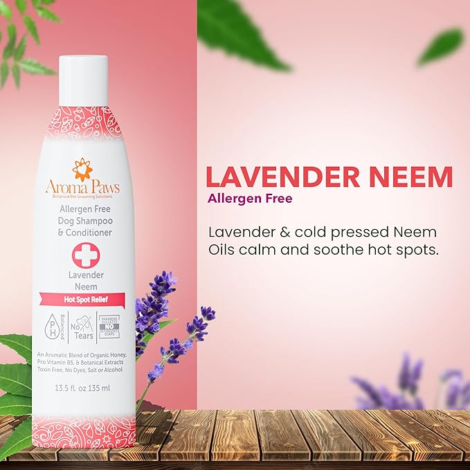 Dog Shampoo and Conditioner - Tearless Shampoo for Cleansing, Grooming, and Conditioning - Hot Spot Treatment Shampoo for Dogs and Puppies - Lavender and Neem 13.5 oz