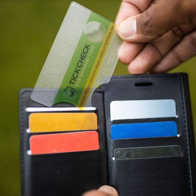 - ✔️ WALLET-SIZED TICK REMOVER CARD FOR PEOPLE OR PETS - This handy credit-card sized tick remover has a large notch for safely removing larger embedded ticks, plus a second, smaller notch for removing nymphs and small deer ticks. This card also features a 3X magnifying glass, and can also be used to remove bee stings, thorns, and splinters