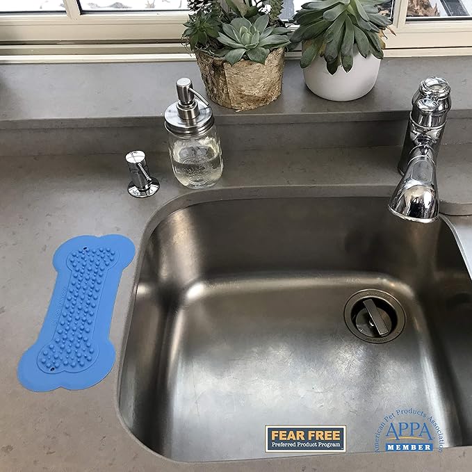 - STICKS TO ANY FLAT SURFACE: Designed for use in bathtubs, sinks, and grooming stations, the Lick Lick Pad doesn’t use suction cups or require adhesives but sticks directly to any flat/shiny surface like tile, porcelain, granite, or glass.