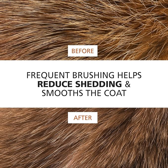 - Double Sided Brush - The first side has a patented double-stack stainless steel pin design to remove more loose fur while stimulating the skin; the second soft nylon brush side finished the coat by distributing natural oils for a nice shine