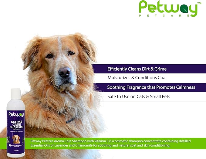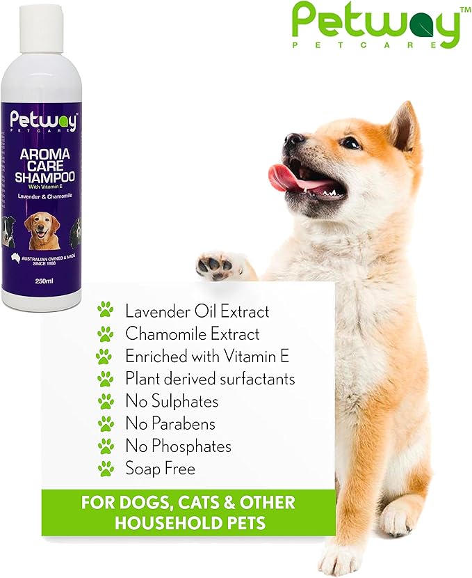 Petcare Dog Shampoo, Aroma Care Pet Hair Shampoo with Lavender, Chamomile & Vitamin E for Natural Coat & Skin Conditioning, Safe for Small Pets, Free of Phosphates, Parabens & Enzymes, 250ml