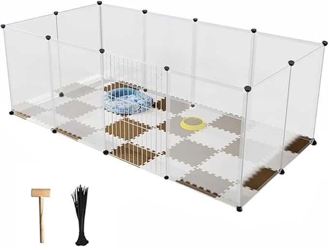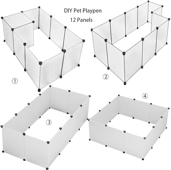 Pet Playpen for Puppy - Plastic Yard Fence Tent for Small Animals,Rabbits Puppy Kennel Cage,Portable Large Space with Transparent White 12 Panels
