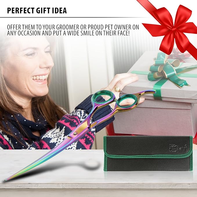 Sharf Rainbow 8.5 Inch Curved Dog Grooming Scissors - Trusted Brand - Premium Steel Professional Dog Grooming Scissors - Ergonomic Design