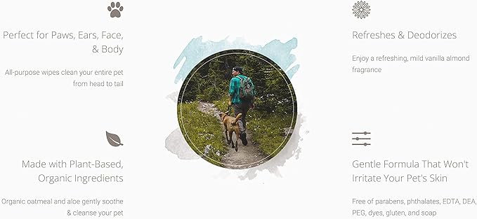 - PLANT-BASED, ORGANIC INGREDIENTS: Zogics’ Pet wipes for dogs are made with biodegradable, good-for-the-skin ingredients that are organic and sourced from nature, including aloe vera, oatmeal, and Moroccan argan oil. They also contain essential oils from vanilla and almonds to give a light, mild fragrance.