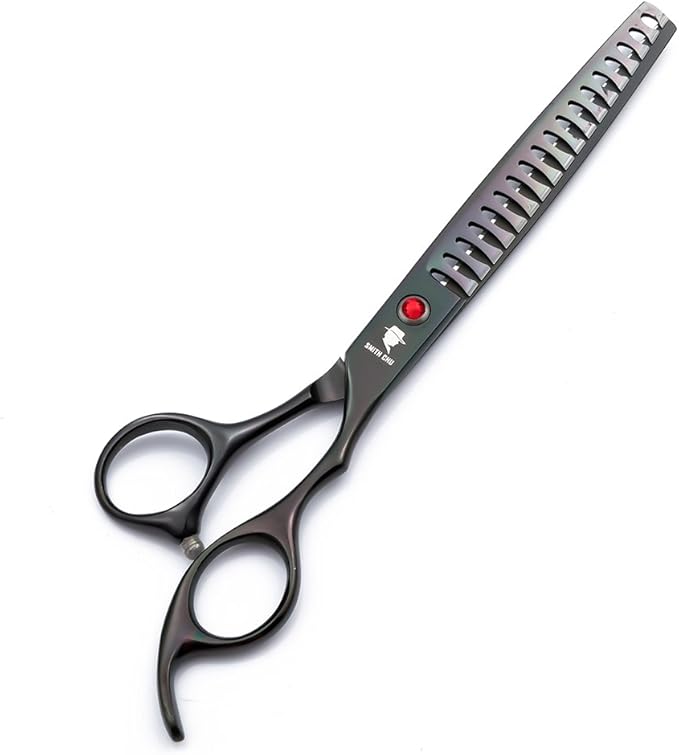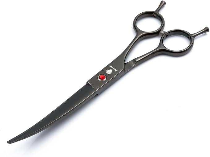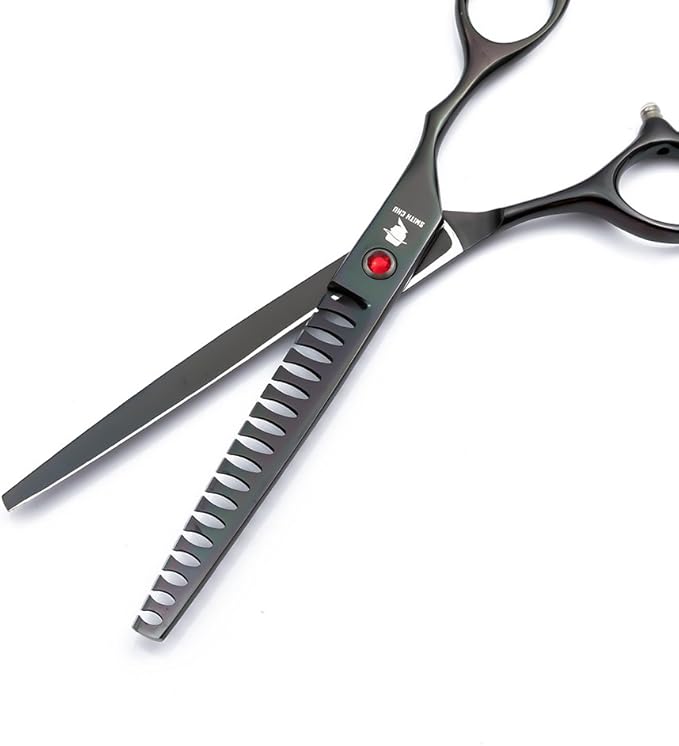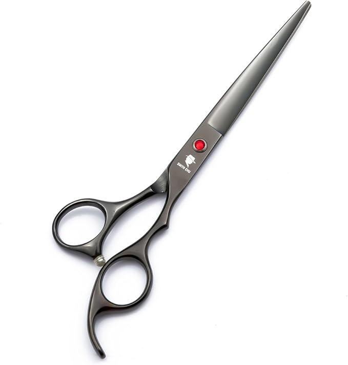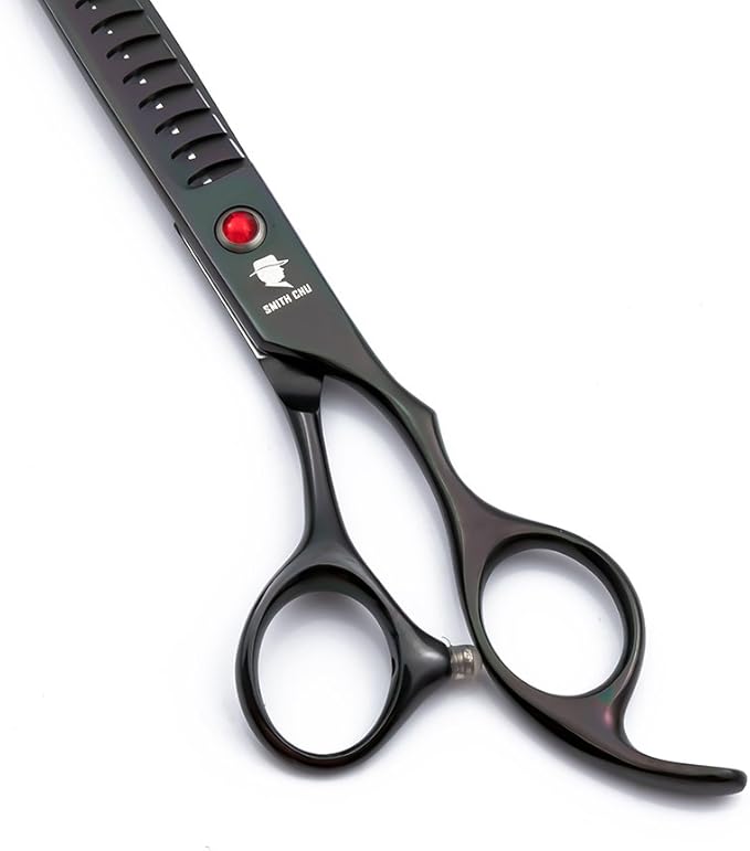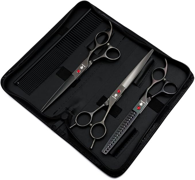 Smith Chu Professional Pet Dog Grooming Scissors Kit - Premium Stainless Steel Straight Curved Thinning Blade Dog Hair Cutting Shears Set -Best Tools for Trimming,7 inch Gun Black with Case (Set)