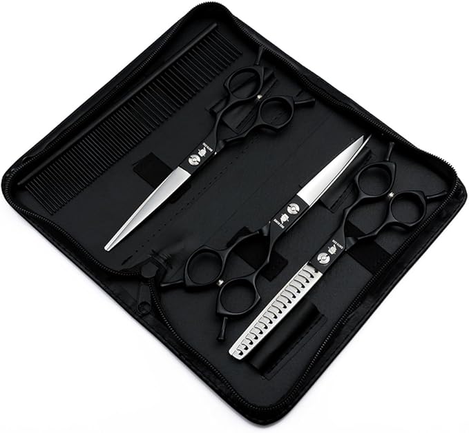 Smith Chu Professional Pet Dog Grooming Scissors Kit - Premium Stainless Steel Straight Curved Thinning Blade Dog Hair Cutting Shears Set