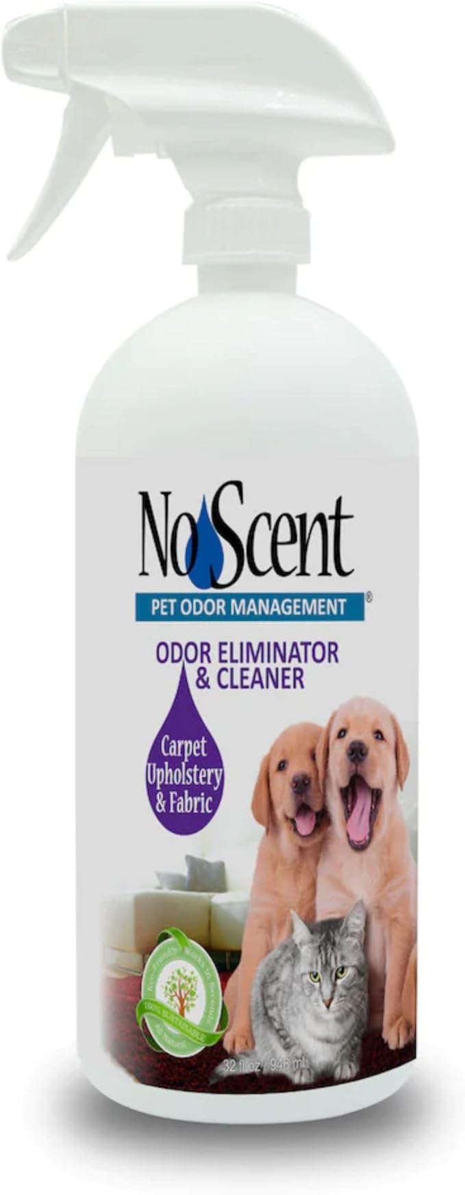 No Scent Carpet Upholstery & Fabric Furniture Spray Spot Cleaner for Wet Dog Smell, Cat Spray, Pet Odor, Urine, Poop & Secretions (32 Fl Oz / 946 mL)
