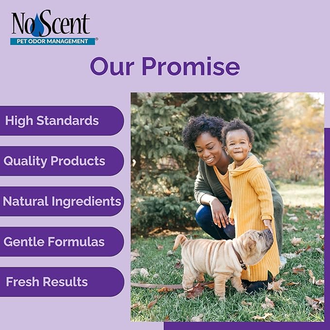 - Stress Free: NoScent is a quick & effective daily refresher spray & spot cleaner to be used freely without removing people, animals, food, treats, water, toys & accessories from the areas and accessories being treated
