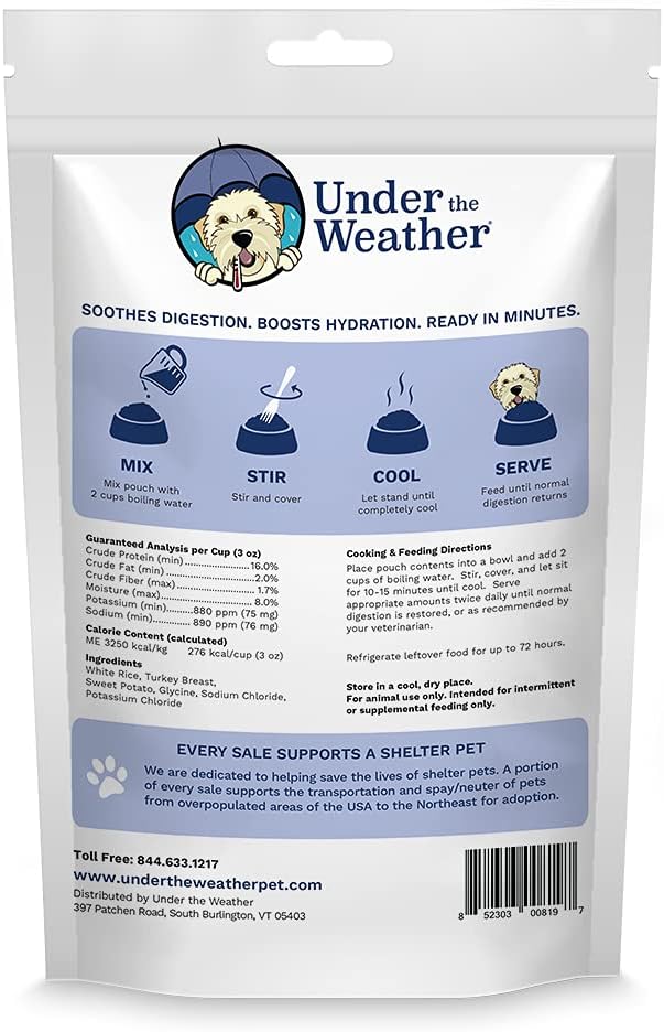 Under the Weather Bland Diet for Dogs | Easy to Digest for Sick Dogs |Always Be Ready| Contains Electrolytes - All Natural Freeze Dried 100% Human Grade Meats| 1 Pack- Rice Turkey & Sweet Potato - 6oz