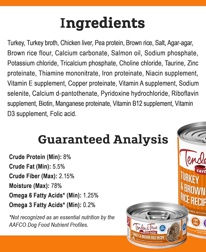Tender and True Pet Food, Dog Food Can ABF Wet Turkey Brown Rice, 13.2 Ounce