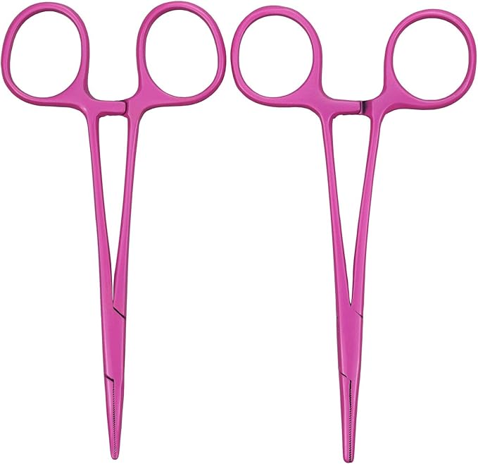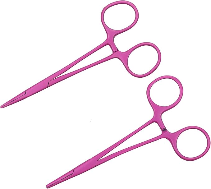 Pet Colourful Stainless Steel Hemostat Hemostatic Forcep,Pet Ear Hair Pull Forcep,Bend Head and Straight Head kit (Pink)