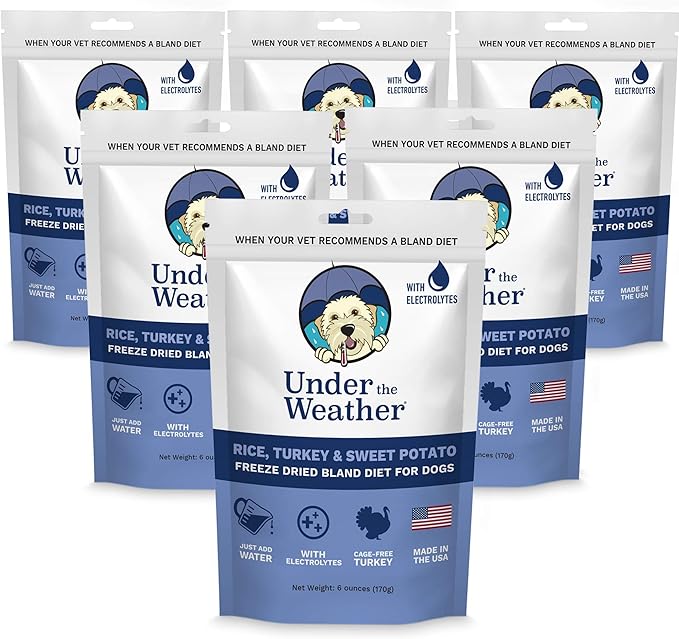 Under the Weather Bland Diet for Dogs | Easy to Digest for Sick Dogs |Always Be Ready| Contains Electrolytes - All Natural Freeze Dried 100% Human Grade Meats| 6 Pack- Rice Turkey & Sweet Potato - 6oz