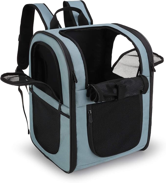 - BETTER CONSTUCTION-Well ventilated design for optimal airflow, two-way entry for easy access, top mesh window for more headroom and visibility, and thick, soft fleece bedding for your pet resting and relaxing. This backpack is firmly structured, providing ample room for your pet to move around.