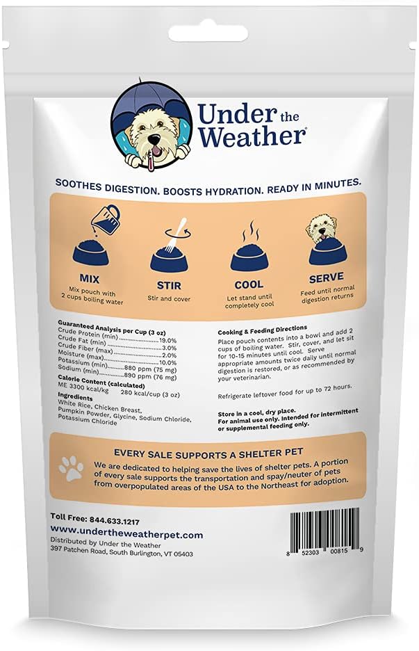 Under the Weather Bland Diet for Dogs | Easy to Digest for Sick Dogs |Always Be Ready | Contains Electrolytes - All Natural Freeze Dried 100% Human Grade Meats | 6 Pack - Rice, Chicken & Pumpkin - 6oz