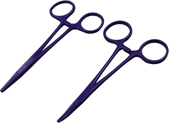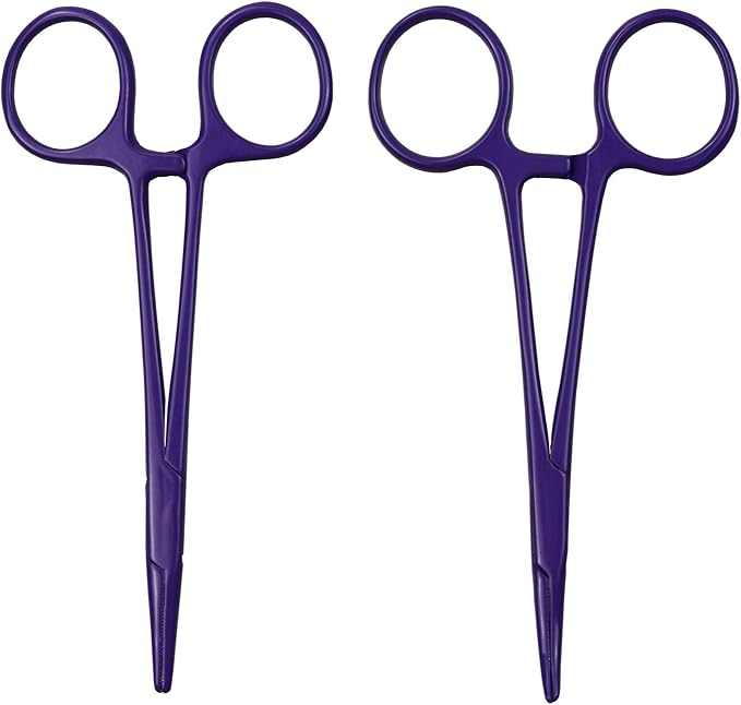 Pet Colourful Stainless Steel Hemostat Hemostatic Forcep,Pet Ear Hair Pull Forcep,Bend Head and Straight Head kit (Purple)