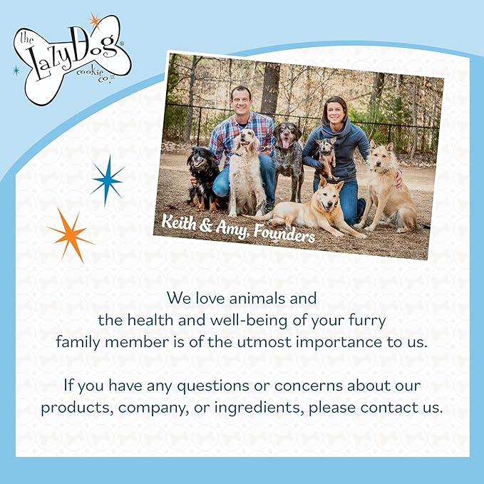 - The Lazy Dog Cookie Company - We proudly bake all our pet treats in the USA. We’re a mom and pop canine kitchen that oven bakes nutritious and delicious treats for furry friends of all breeds, ages and sizes.