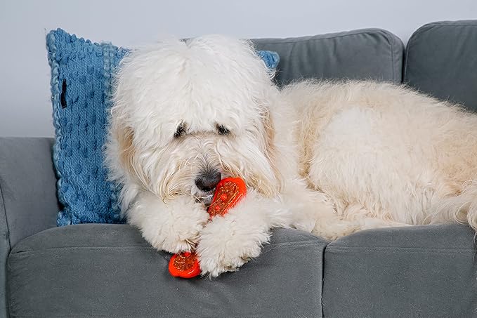 - FOR MILD TO MODERATE CHEWERS: This dog chew toy has a durable nylon shell that holds a yummy bacon-flavored treat in the center for mild to moderate chewers – a toy and treat all in one for chewing satisfaction!