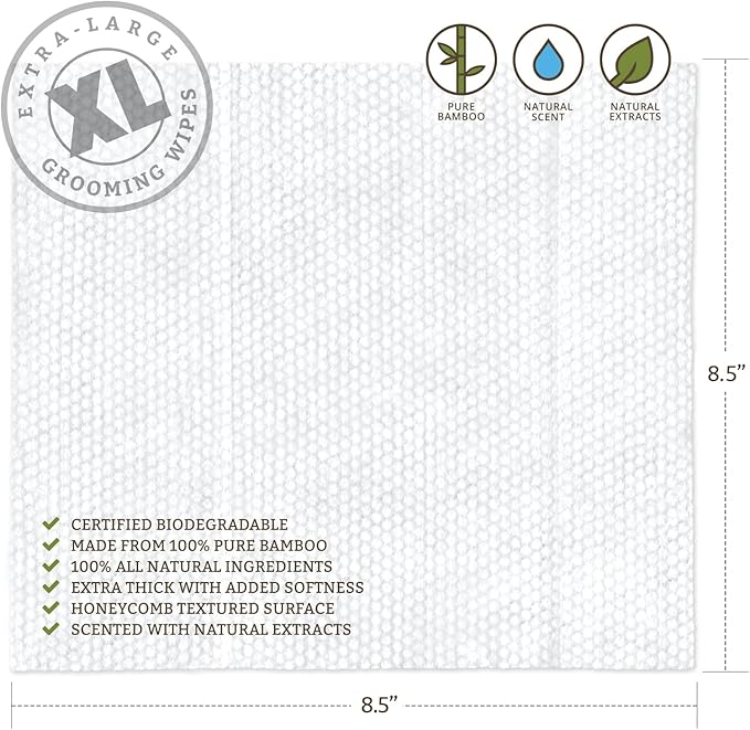 - TOP RATED DOG WIPES! - Compostable, Made from Pure Bamboo & All Natural Extracts. 60 Count - Pet Grooming Wipes - Extra-Large (8.5 x 8.5 inches) Vegan & Cruelty Free.