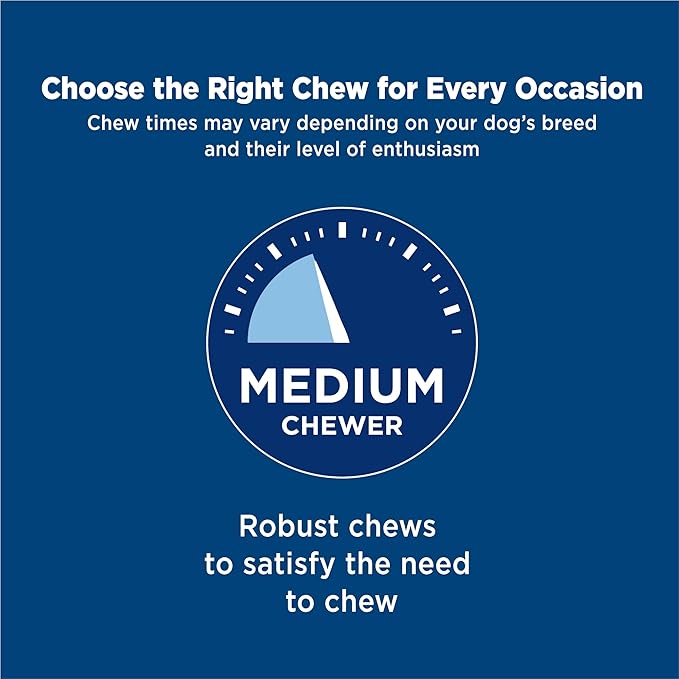 - Premium Medium Strength Chewers: Robust, long lasting chews that satisfy the need to chew, total chew time varies depending on your dog’s breed and enthusiasm