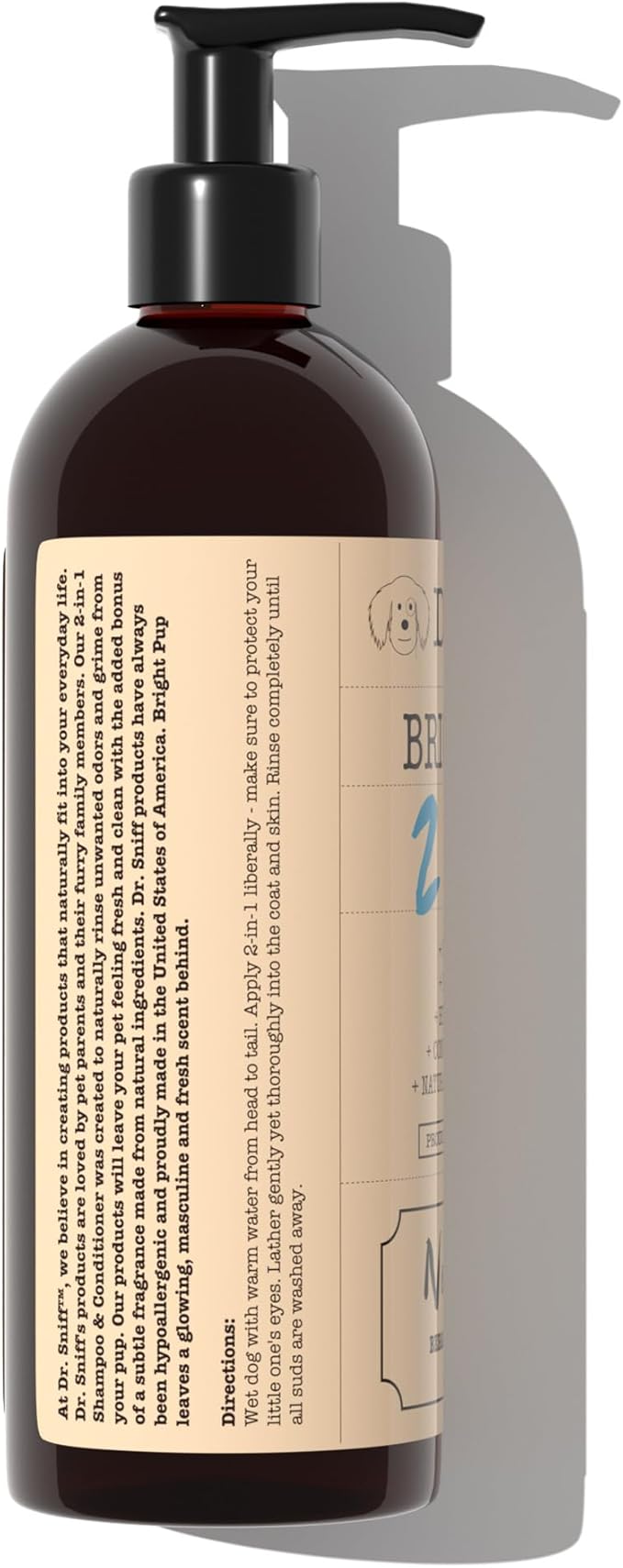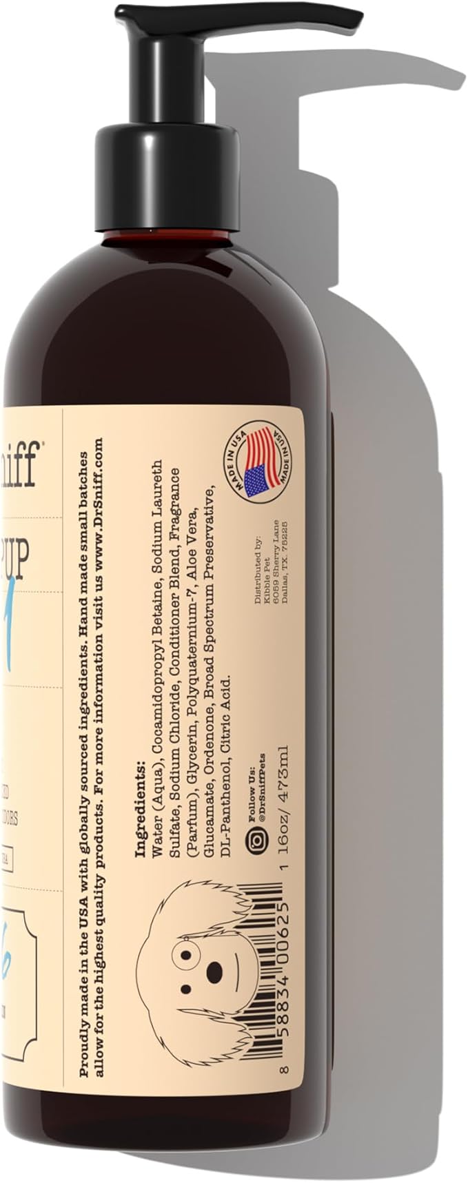 - CLEAN & SAFE INGREDIENTS: Dr. Sniff Fresh Pup 2-in-1 Pet Shampoo & Conditioner is pet pH balanced, gluten-free, cruelty-free, paraben free, sulphate free and consciously sourced to be a safe and reliable option for your companion.