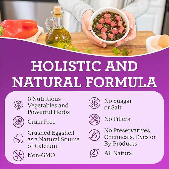 - Green food pre-mix makes an ideal base for a nutritionally complete low-carb diet; 100% grain-free, our holistic blend of six (6) nutritious dehydrated vegetables contain absolutely no dies, fillers, wheat, corn, soy, nor preservatives